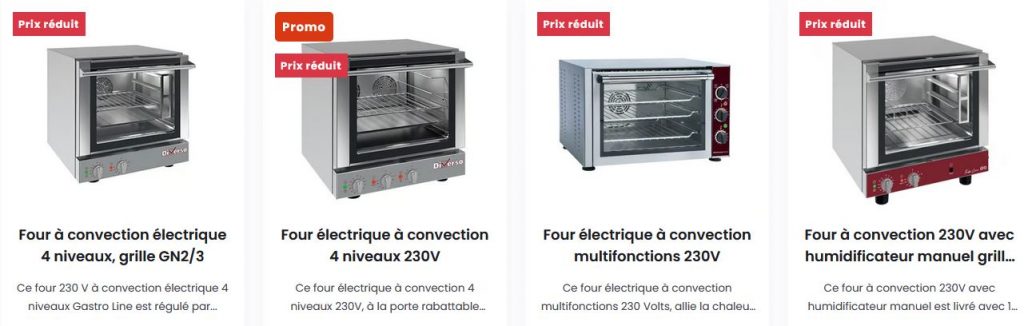 - Fours à convection professionnels adaptés pour les restaurants, collectivités ou cuisines de production.